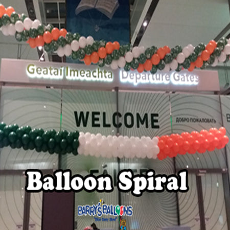 Balloon spirals are a great way to bring colour to large spaces. They can be made to any size and can last up to 3 weeks when air filled for indoor use.