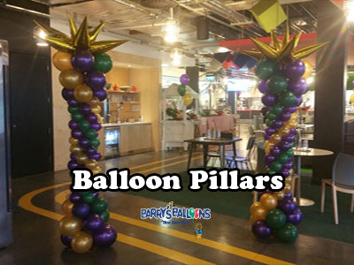 Balloon pillars are free standing so can go anywhere. They are generally 6ft-8ft in height and can be made up for any theme. These two were for a Rio Carnival promotion